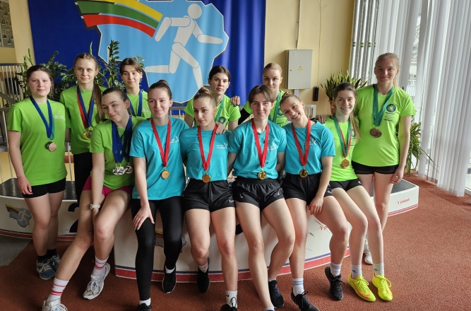 – Šuolio į tolį merginų rungtyje sidabro medaliu džiaugėsi Kamilė Bronušaitė (SD21), bronzos medalį iškovojo Simona Balčienė (SD22);