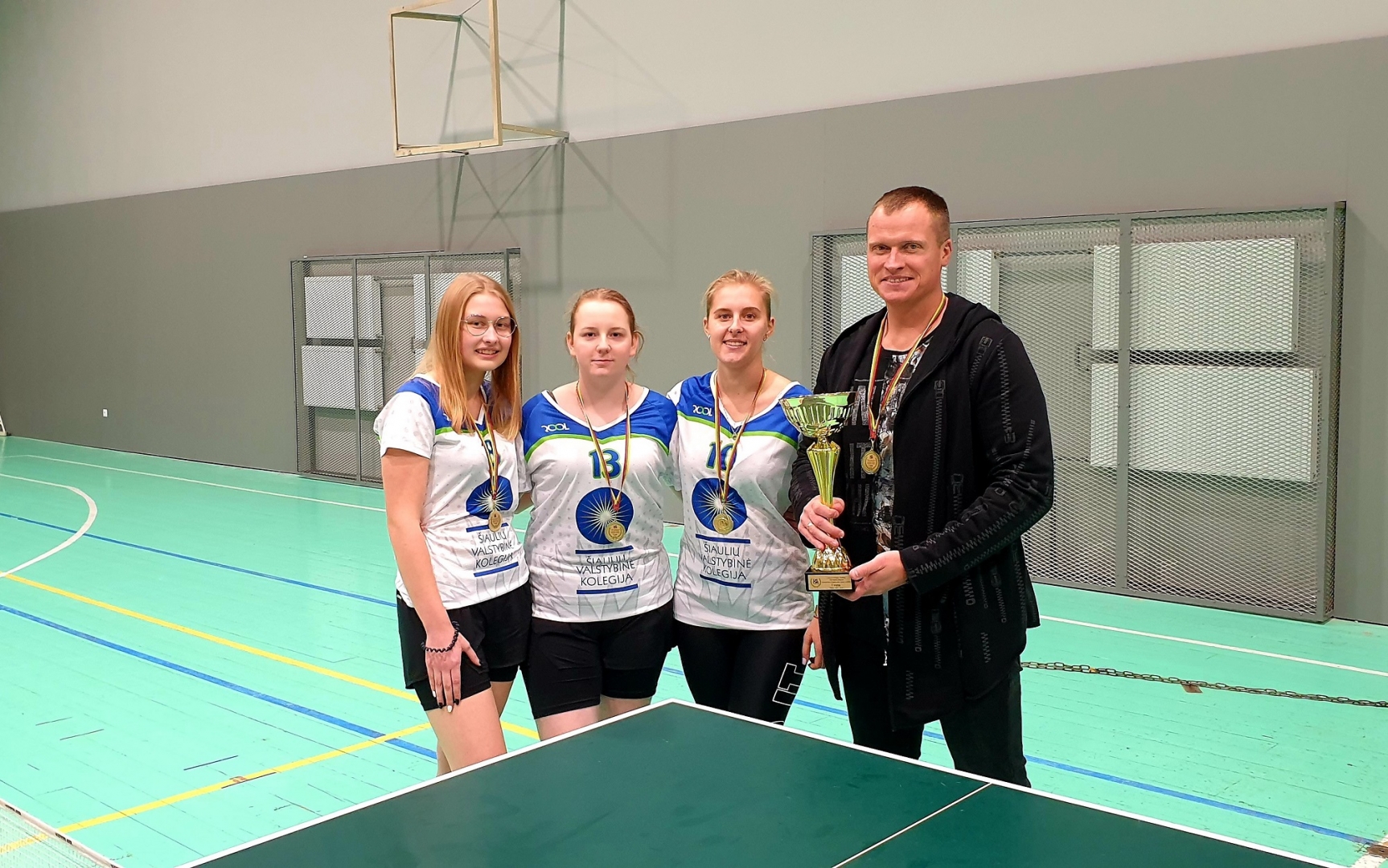 Mūsų aukštosios mokyklos merginos įnirtingose kovose iškovojo pirmąją vietą ir džiaugėsi aukso medaliais! Antrąją vietą pelnė Kauno kolegijos stalo tenisininkės, Vilniaus kolegijos merginos liko trečioje vietoje.