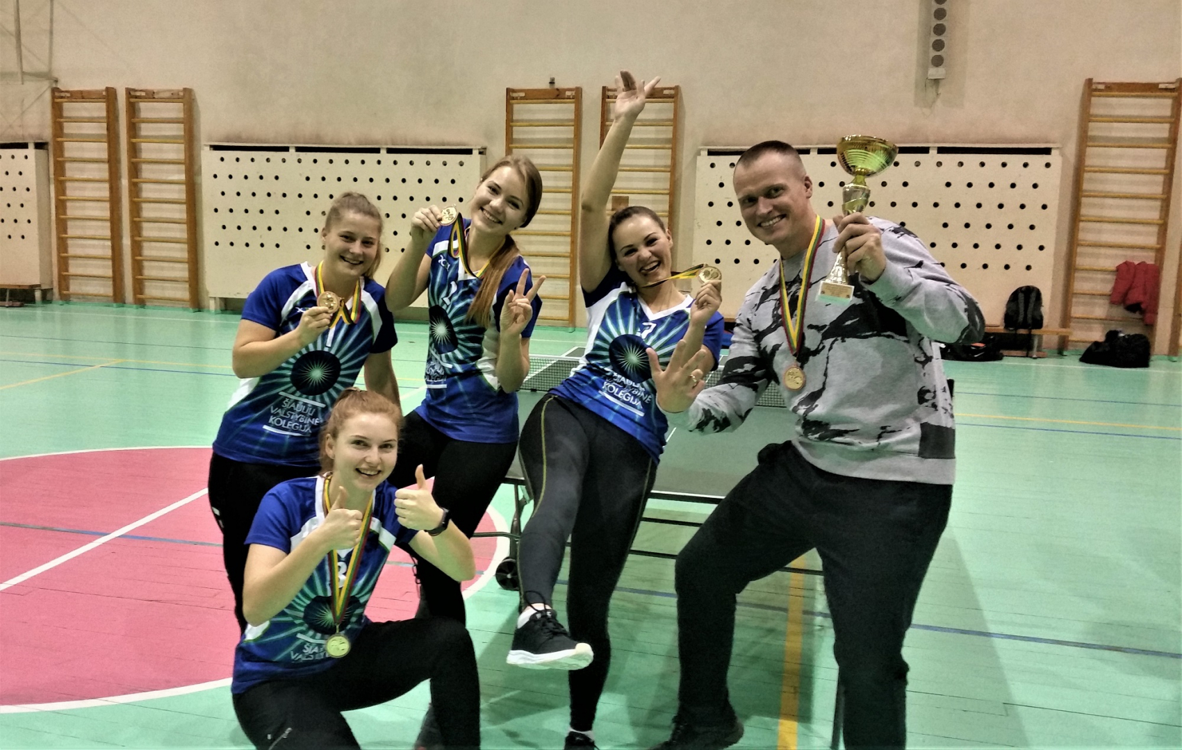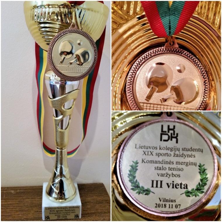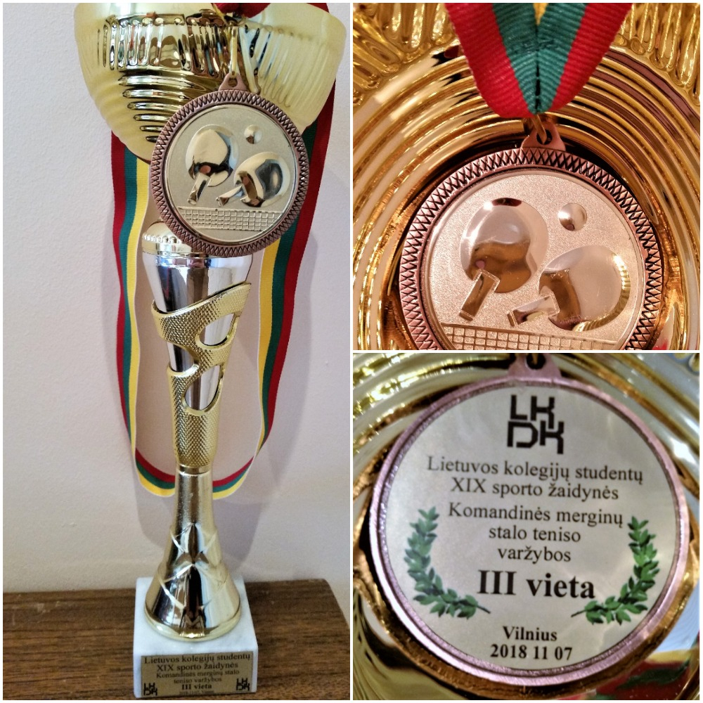 Mūsų kolegijos merginos užėmė III vietą ir džiaugėsi bronzos medaliais. Pirmąją vietą iškovojo Kauno kolegijos stalo tenisininkės.