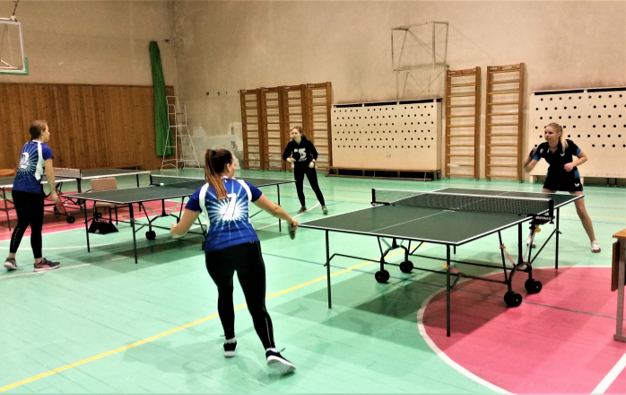 ŠVK merginų stalo teniso komandoje rungtyniavo šios studentės: Deimantė Tamulytė (KNZ17), Sidona Račkauskaitė (K16), Smiltė Švelnytė (K16) ir Gabrielė Kreimerytė (OK16).