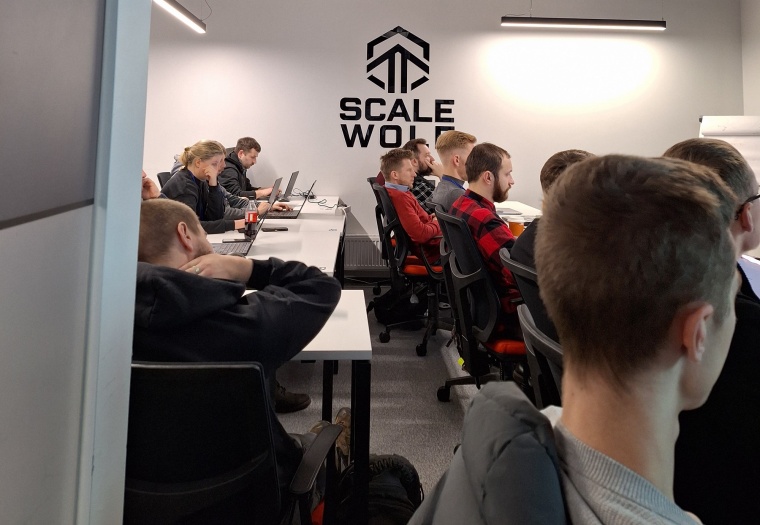 Programų sistemų antro kurso studentai Paulius Veršnickas, Faustas Ercus ir Informatikos mokslų katedros lektorius Donatas Daugirdas dalyvavo išskirtinės programos „ScaleWolf“ mokymuose.