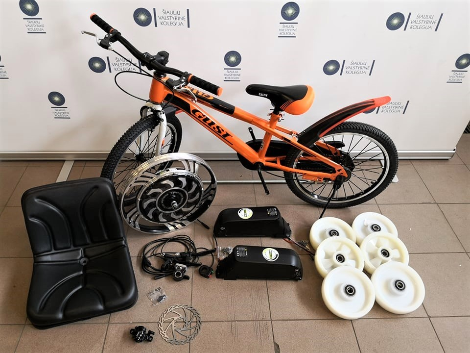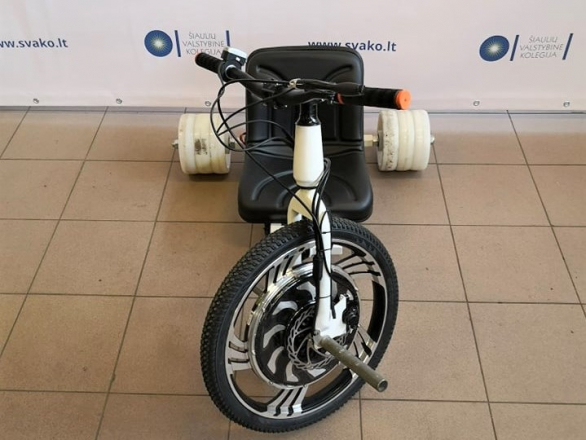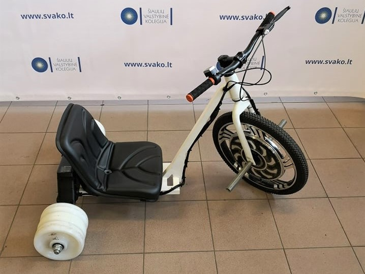 „Mes paprastą dviratį modifikavome – perdarėme į elektra varomą drifto dviratį. Įmontuotas 48 voltų 1000 vatų „BLDC“ elektros variklis ir 51,8 voltų 10,4 Ah ličio jonų akumuliatorių baterija“, – trumpai savo idėją pristato ŠVK Transporto inžinerijos katedros dėstytojas Tomas Kalinauskis.