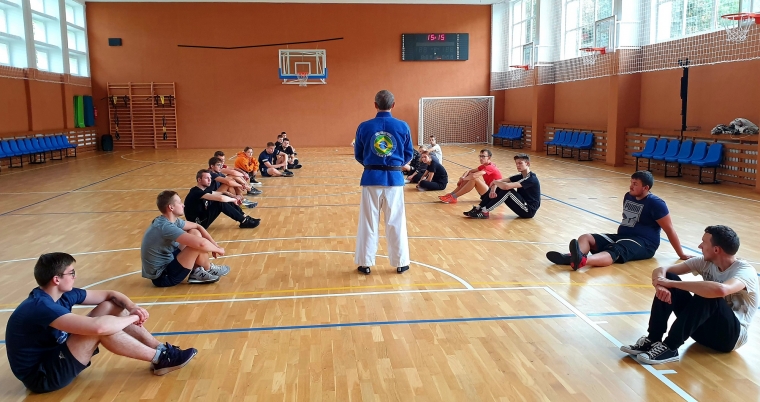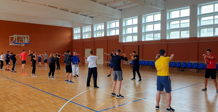 Susitikimo metu studentai susipažino su kovos menais, išmoko įvairiausių savigynos būdų ir juos demonstravo.
