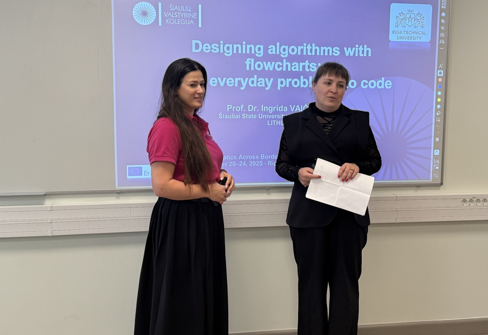 „Šioje intensyvioje programoje vedžiau algoritmų dirbtuves Designing Algorithms with Flowcharts: From Everyday Problems to Code (liet. Algoritmų kūrimas naudojant blokines schemas: nuo kasdienių problemų iki kodo). Kadangi tarptautinėje grupėje susibūrė skirtingų studijų pakopų ir patirčių studentai, pradėjau nuo pagrindinių sąvokų (algoritmas, žingsnis, ciklas, įvestis / išvestis) ir perėjau prie algoritmų konstravimo (if sąlygos, for / while ciklai) taikant blokines schemas ir praktinius pavyzdžius. Ypač įsimintini buvo studentų šalių ir institucijų pristatymai, pasakojimai apie ryšius su matematika.
