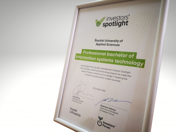 Šiaulių valstybinę kolegiją pasiekė džiugi žinia – studijų programai Informacinių sistemų technologija suteiktas „Investors‘ Spotlight“ kokybės ženklas.