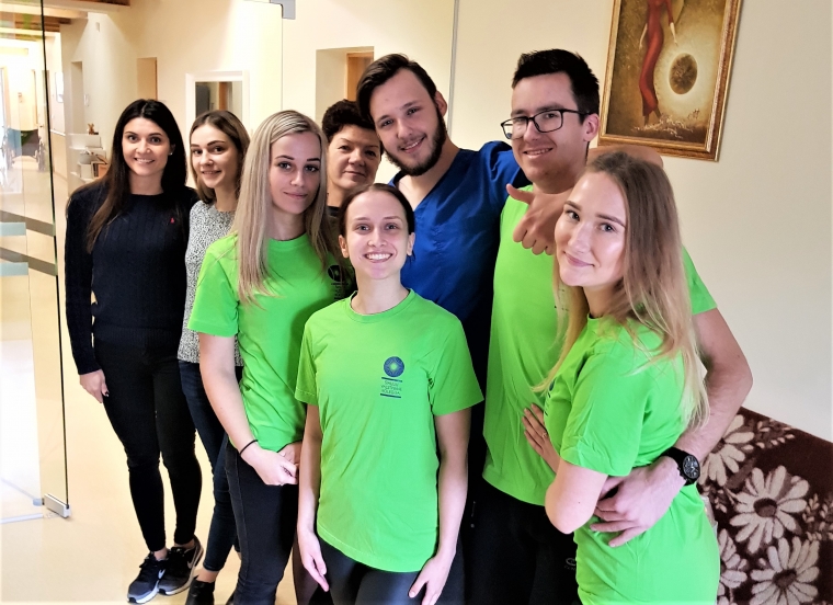 Kineziterapijos studijų programos studentai atliko masažus, padėjo pasivaikščioti rudeniškoje gamtoje.