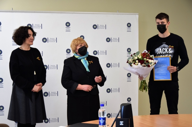 Studentas Tadas Jonaitis pagerbtas vasario 15 dieną Šiaulių valstybinėje kolegijoje vykusiame renginyje, skirtame dviem progoms – jau rytoj švęsiamai Lietuvos valstybės atkūrimo dienai ir vardinės Kazimiero Šavinio premijos įteikimui.