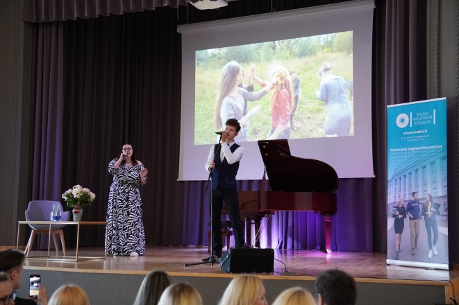 Už puikią renginio nuotaiką dėkojame renginio vedėjams – Kolegijos alumnams Agnei Kuznecovai ir Dariui Kamandieriui, už muzikinius sveikinimus padėka skrieja studentams Indrijanai Indriekutei ir Tomui Mackevičiui. Vaikų erdvėje su įvairiomis veiklomis ir žaidimais laukė Socialinio darbo studentės Iveta Vilkaitė ir Elora Povilaitytė. Jaunieji renginio dalyviai puikiai praleido šeštadienio popietę, susirado naujų draugų.