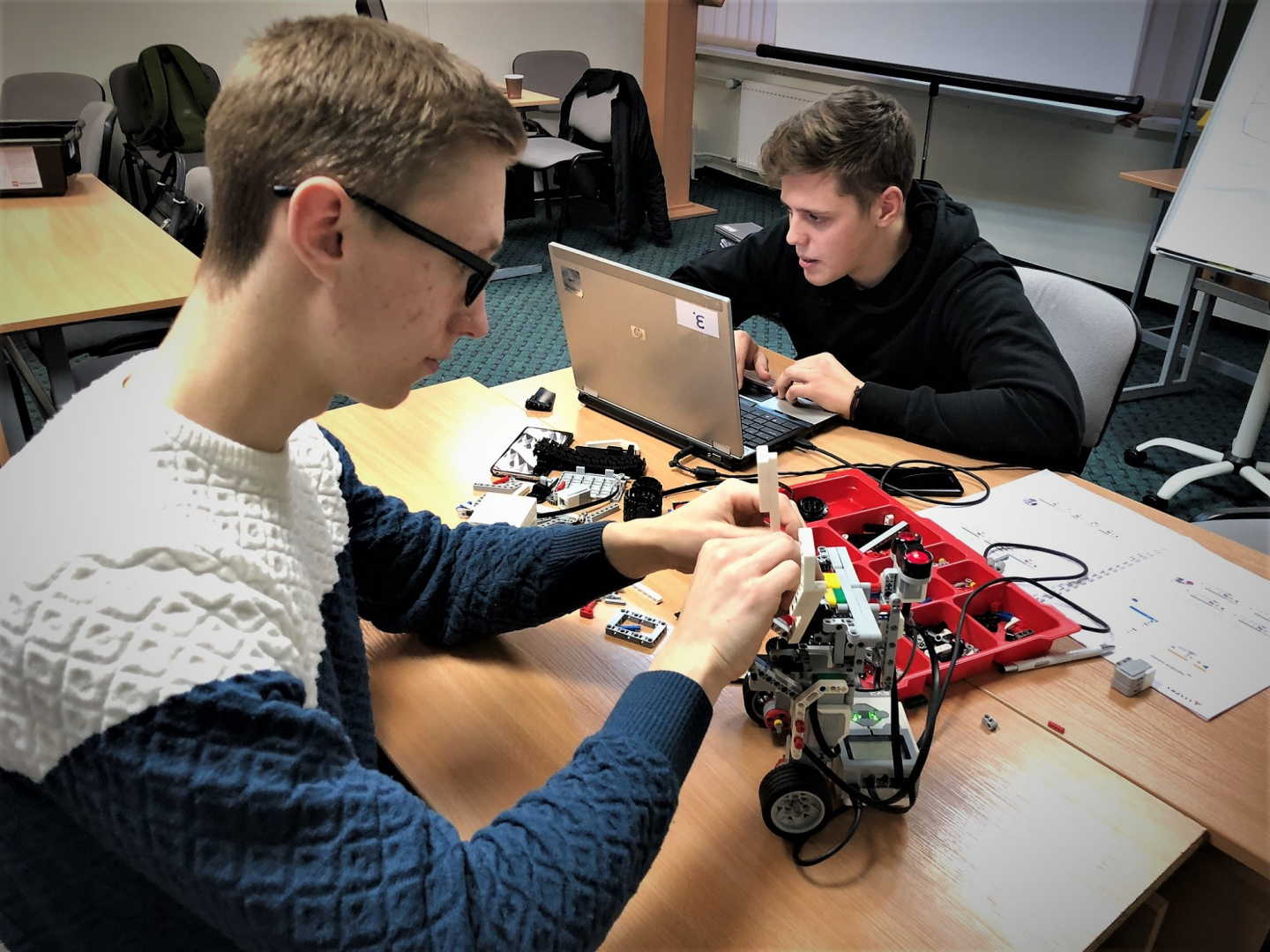 Pusė mokymų laiko buvo skirta praktikai su LEGO MINDSTORMS robotų modeliais. Kolegijos studentai kartu su dėstytojais atliko komandines užduotis ir varžėsi tarpusavyje. Apibendrinant šio etapo rezultatus, mokymų dalyviai džiaugėsi galėję dalyvauti inovatyviuose ir šiuolaikiškuose užsiėmimuose. Kaip sakė studentai ir dėstytojai, tai buvo ne tik verslumo mokymai. Dalyviai teigė įgiję teorinių ir praktinių įgūdžių, kurie gali praversti įvairiose gyvenimo srityse. Visi džiaugėsi įtraukiančia mokymų forma, galimybe tobulinti komandinio darbo įgūdžius.