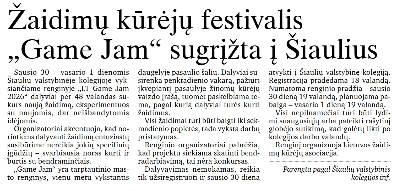 Žaidimų kūrėjų festivalis „Game Jam“ sugrįžta į Šiaulius!